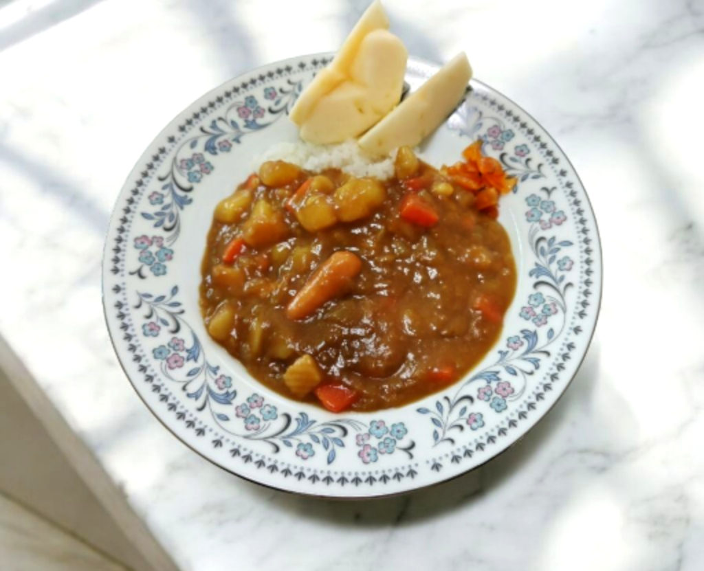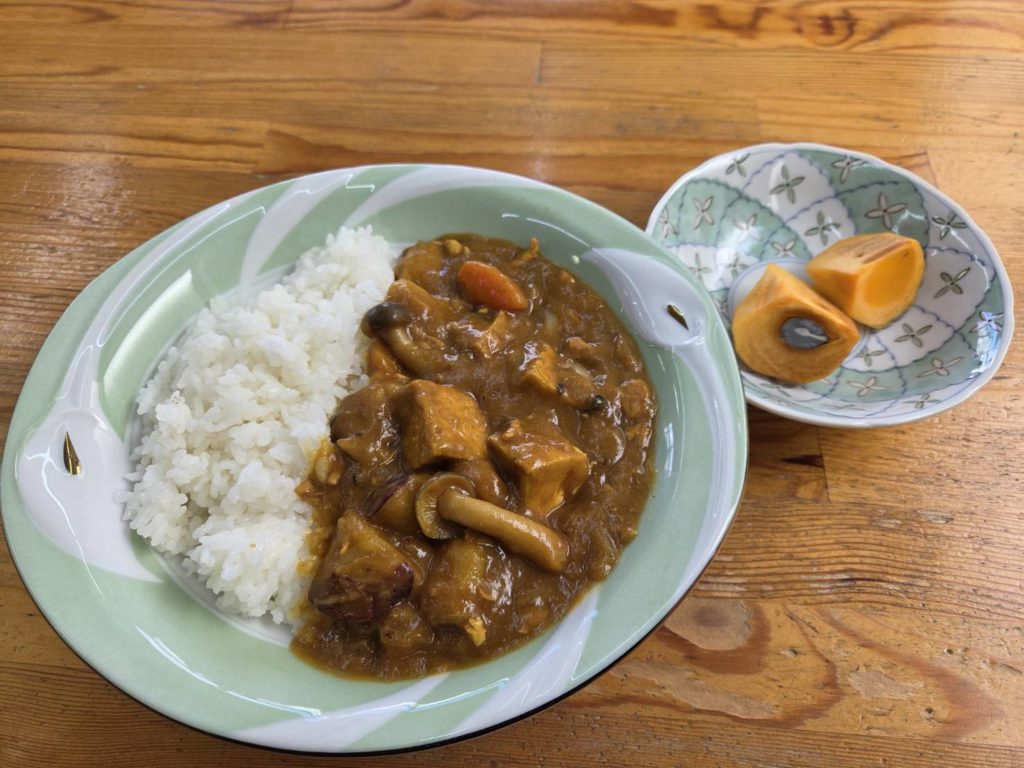 第二作業所は第一作業所のアイデアの厚揚げと鶏肉、玉ねぎ、にんじん、サツマイモ、シメジが入った甘めのカレーです。